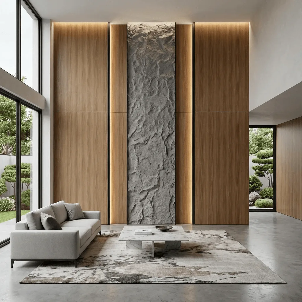 Rock panel with golden Breeze pattern. Elegant look for luxurious spaces.
